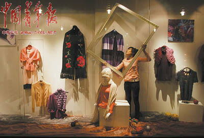 9月18日,北京华人世家编织体验馆,工作人员正在布置展览墙。近日,以传统手工编织为主题的展览在这里举行。据介绍,为了推进对老手艺的传承,该馆免费对下岗女工和女大学生进行技能培训,通过促进就业的方式来保护非物质文化遗产。