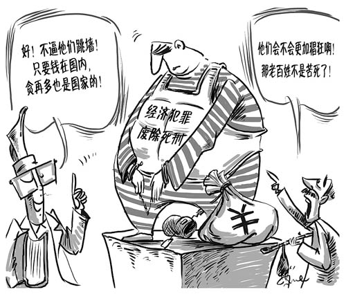 8月23日提交全国人大常委会讨论的《刑法修正案八(草案)》准备取消13个非暴力经济犯罪的死刑罪名。除此之外,仍有多个死刑罪名涉及贪腐等非暴力犯罪。中国社科院一专家撰文称,取消贪官死刑可避免其跑到国外免死的负面效应,此说引起广泛争议。(新华网9月21日)