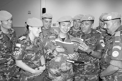 成都军区总医院赴黎巴嫩维和医疗队,在为联合国维和人员施展精湛医疗技术的同时,还组织了多项公关活动,提升中国和中国军队在各国维和部队及当地群众心目中的影响力。不久前,他们成功举办了“魅力中国”精品文化讲座和汉语知识培训等活动。图为维和队员绍永聪博士在向西班牙维和军人教授汉语。