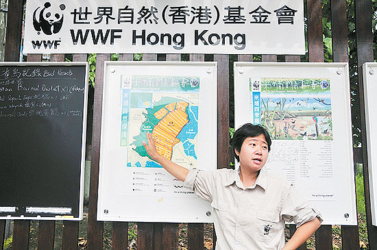 张思敏,我们参观米埔湿地时的导游,是世界自然(香港)基金会的工作人员。除了为游客进行讲解之外,她更重要的工作是研究保护区内的动物。“先前一起的一些同事工作几个月后就离开了这里。他们多半是受不了这里相对单调和平淡的工作方式,特别是保护区内的冬天十分寒冷萧条。”这位穿着朴素工作装、略显憨厚的香港姑娘提到湿地保护,透露了心声:“我是发自内心地喜欢这份工作。从1997年起到现在,我从事这份工作已经13年了。”而说起来湿地的游客时,她显出几分得意:“老人、小孩、年轻人都喜欢来这里参观体验。多数香港人平均每年至少会来一次。他们在离开这里的时候都会非常地留恋。”