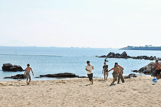 香港南丫岛的海滩上,一群年轻人在玩沙滩球 华东交通大学 胡康榆摄