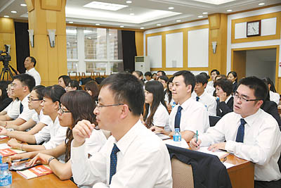 包商银行团干部认真听取团中央有关部门负责人讲团课