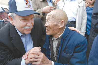 到达北京两天后,Beneda按原计划飞抵湖北。在红安县的李先念纪念馆,Beneda见到了已经75岁的罗必书。这个当年在稻田里帮自己解开缠在身上的降落伞的少年如今也已经是鬓发斑白。