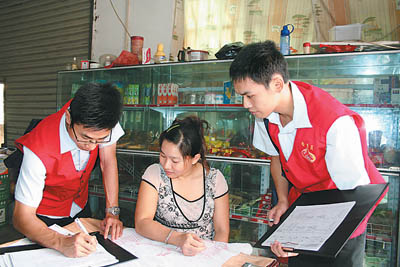 10月15日,广东东莞大朗镇蔡边村,两位新上任的大学生村官在当地开展人口普查工作。一些村委会的老干部表示,新来的大学生村官能提升村委会的整体文化水平,也能为村里带来更多处理问题的新方法和新思路。