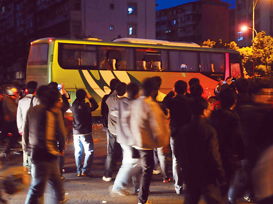 10月27日,山东鲁能队1∶1战平南昌衡源队后提前夺冠。赛后鲁能的大巴车遭到江西球迷袭击。CFP供图