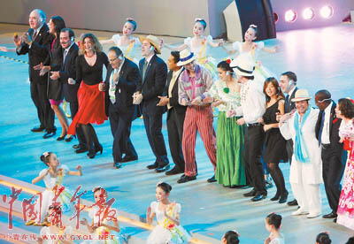 10月31日,中国2010年上海世博会闭幕式在世博文化中心举行,来自各国参展方的代表与中国小朋友一起载歌载舞。