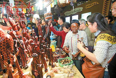 10月30日,上海世博会闭幕在即,游客在非洲联合馆里的集市上抓紧时间选购商品。