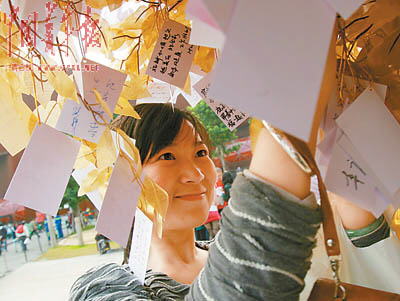 10月31日,新加坡馆前竖起了许愿树,观众写下美好的祝愿。