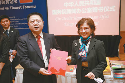 10月19日,中国国务院新闻办副主任王仲伟代表中国政府,在土耳其伊斯坦布尔市向土耳其海峡大学和奥坎大学赠送1000多册汉语图书,土耳其海峡大学副校长、海峡大学孔子学院理事长阿拉特女士,从王仲伟手中接过了赠书书单。此前,王仲伟还代表中国政府在安卡拉向土耳其安卡拉大学、中东技术大学、佳蕾小学和USAK赠送了汉语图书。