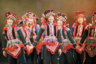 《云南映象》中几十个“花腰彝”的花季少女。这种纯真,是现代人所失落的自然生长于天地间的尊贵。