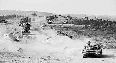 “红方”装甲分队向“蓝方”阵地发起猛攻。