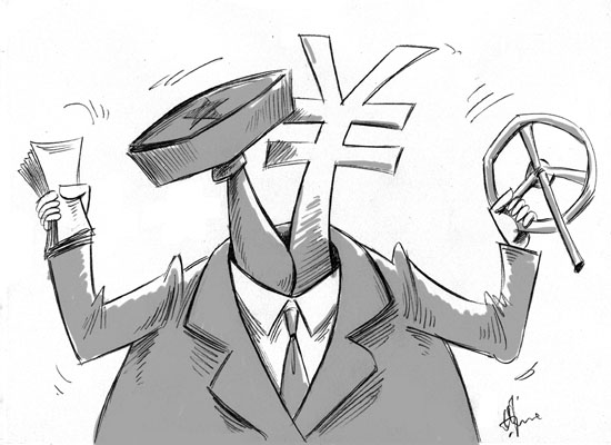 河南登封市民李国军买的公交车经该市运管所审批跑公交线路,可运管所不许其入市,只能跑其中的一段,原来运管所开的运输公司在跑这条线路。(大河网11月8日)漫画:徐简