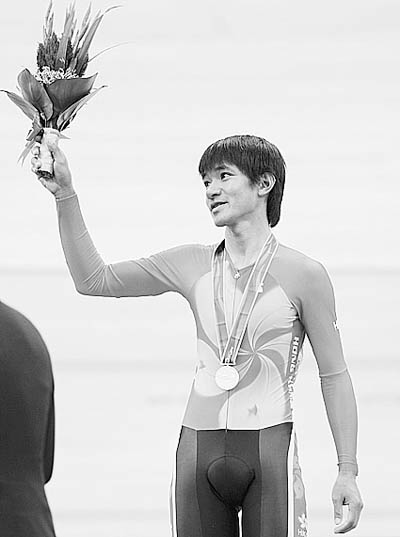 11月17日,在广州亚运会场地自行车男子记分赛决赛中,中国香港选手黄金宝以60分的成绩获得银牌。
