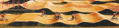 11月19日,广州亚运会首次设立了小轮车项目的比赛。在此项目上中国、中国香港和日本选手拥有较强实力。图为小轮车男子越野比赛现场。