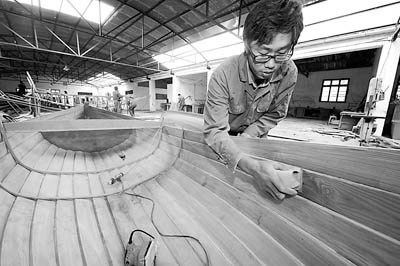 浙江省舟山市岑氏木船作坊创建于1900年,主要打造小型木质渔船。2008年,岑氏木船作坊造船工艺被列入第二批国家级非物质文化遗产名录。目前岑氏木船作坊一年的产值达到1000多万元,订单包括大型仿古帆船、运河仿古漕舫以及欧式木质运动帆船等多种类型,既实现了企业良好的经济效益,也让古船制造手艺这项非物质文化遗产得到了良好继承。