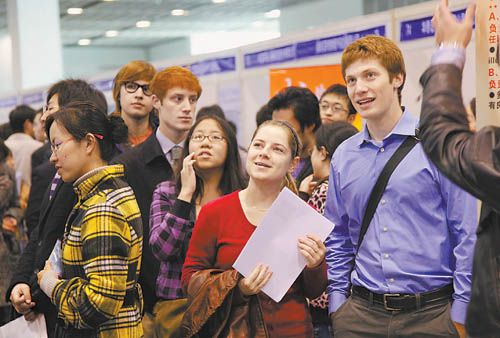 11月28日,南京市秋冬季人才交流大会在南京国际展览中心举行,一些在南京大学求学的外国留学生也加入到应聘者行列,希望在中国找一份称心如意的工作。