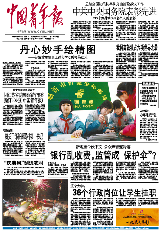 团江苏省委向团绵竹市委赠订500份《中国青年报》