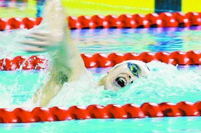 左图:孙杨在比赛。 右图:孙杨赛后庆祝顺利。本报记者 刘占坤摄