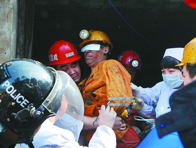 11月22日,威远县小河镇八田煤矿,矿工刘明全获救,他是第一个获救的矿工。新华社记者 江宏景摄 |