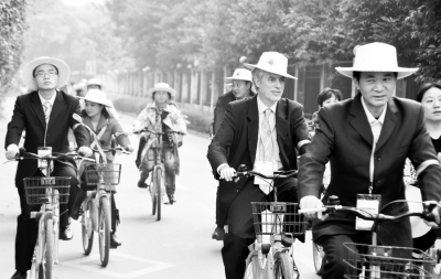 11月17日下午,100多名头戴特制草帽,臂上系着绿丝带的中外教育专家,来到泡桐树小学绿舟校区参观。看到校园里老师和学生用包装纸做成的墙壁装饰画,用废弃内衣做成的小手绢,大家纷纷称赞这所农村小学在每一处细节上都贯穿着“绿色教育”的理念。