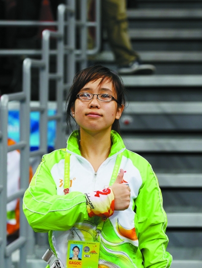 17日上午,大学城中心体育馆,广州亚运会场地自行车男子争先赛正在激烈进行。赛场上,中国选手张磊夺冠时的精彩表现引发了观众的阵阵欢呼。而在观众入口处,来自广州美术学院的志愿者小邝只能用微笑迎接不断进来的观众,而把比赛场上的一幕幕精彩留在身后。