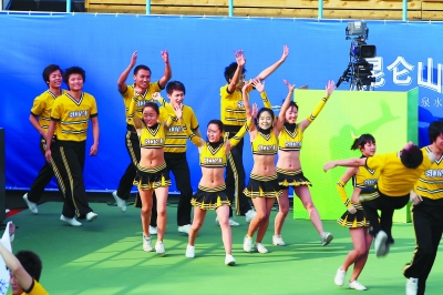 拉拉队志愿者。本报记者 陈 剑摄 |