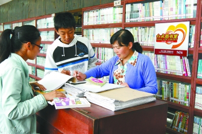 我们看到,在图书室仅有的4个书架上,“红云图书室”的书已经被翻得有些陈旧了。校长许崇柞说:“这批书在学校很受欢迎,尤其老师借得多,书总是在流通中,所以磨损很大。”