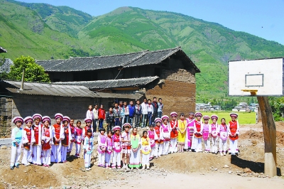 碧云完小是一所集周边8个自然村白族、彝族孩子就读的中心完小,当地经济基础薄弱,教育发展相对滞后。2007年以前,孩子们都是在破旧的瓦房中读书,直到2007年,村委会、老年协会、茈碧乡教办通过置换的方式,为学校换来一块建新教学楼的地。今年,教学楼投入使用了,但学生宿舍仍然没有得到解决,全校23个住校学生分别住在两间不大的土坯房里,他们中最小的只有6岁。学生家长每周两人到学校轮流照顾这些幼小的孩子。