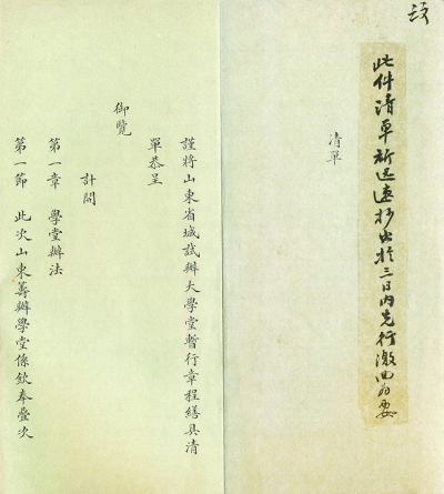 山东大学是中国现代高等教育的起源性大学之一。其前身是1901年清廷准允创办的山东大学堂。学堂当年开办,当年招生。这是继京师大学堂之后中国创办的第二所国立大学,也是中国最早开始招收学生的国立大学。山东大学堂的创办与招生在中国引起强烈反响,特别是1901年被朝廷通饬各省要求参照办理的《山东大学堂章程》,作为中国第一部大学章程,不仅为山东大学一百多年按章办学奠定了传统基础,而且为当时正在兴起的中国现代大学教育树立了生动的范标,催生了全国各地大学堂的诞生,为中国大学教育的兴起和发展做出原创性的独特贡献。