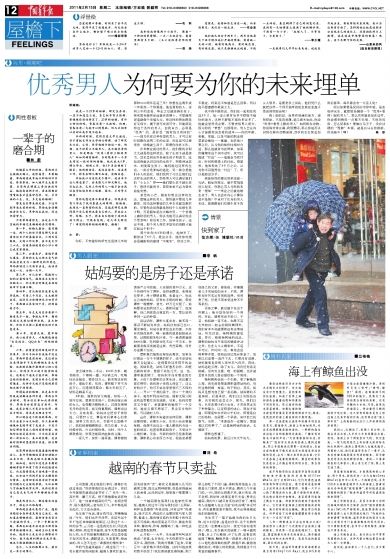 我是一个23岁的姑娘,研究生在读。一直不知道怎么说,自己似乎有点恨嫁。彤姐姐你恐怕要笑了,23岁的姑娘,有什么好怕的呢,青春还有一大把呢。的确,青春还有一大把可以慢慢耗,但几次相亲以后却让我乐观不起来。