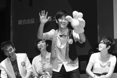 8月6日,电影《青春万万岁》中的演员在秀演技,由90后自编、自演的电影《青春万万岁》当日在中国电影博物馆正式亮相。这是一个关于90后青春、梦想和成长的必然与偶然错误的故事,所有演员都是表演经验为零的草根学生。该片由肯德基和土豆网联合出品。