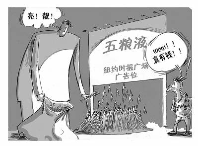 “五粮液”的形象宣传片日前正式亮相美国纽约时报广场。此前有媒体报道称,该处广告牌每月租金高达40万美元。有网友认为,美国是白酒的非主要消费市场,在此投放巨额广告涉嫌浪费。(《北京晨报》8月10日)