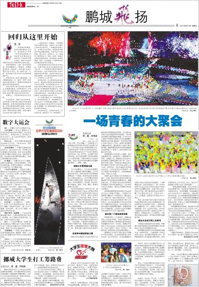 在大运会赛场上,无论运动员成绩好坏,每个人都能成为最终的赢家。对于有些运动员来说,这里只是他们走向更高竞技舞台的一个跳板。更多的运动员在竞技场上可能会名落孙山,但与怀着共同梦想的同龄人相聚在这里,将给他们留下足以铭记一生的宝贵回忆。在这里,运动和比赛只是载体,理想、友谊、榜样、青春和激情才是主题。