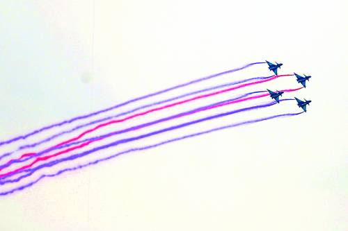 开车、滑出……当地时间11时40分,伴随着震耳的轰鸣声,6架带有“五星红旗”图案的中国空军歼-10表演机蓄势待发。这支享有“中国蓝天仪仗队”美誉的国家飞行表演队,组建51年来曾为来自五大洲166个国家和地区的668个代表团进行过500余场次飞行表演。