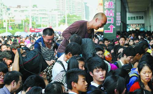 9月30日,湖北省武汉市,火车站出现客流高峰。CFP供图