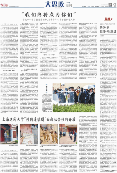 导演组成员、学生工作部(处)负责人陈赛金告诉记者,这些戏都有现成的华政红色故事本子,但像这样在校园里进行沉浸式互动演出还是第一次,“学生准备的时间不多,都是一边学习一边准备。它的可复制推广性比较强,因此后续具备变成常态化思政课的潜力”。他说,这样的思政课不仅能让更多“学习者”熟悉历史、重温历史,也能激发“授课者”的爱国爱校情怀。这样的做法,让学生登上“历史”舞台,让辅导员上好思政课,以“身边事”感染“身边人”。