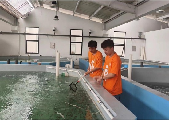“渔跃农门——本硕博卓越助农团”观察鱼苗情况。四川农业大学供图