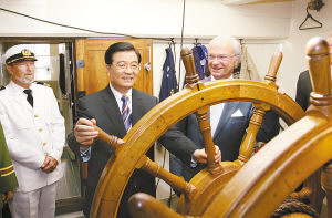 胡锦涛出席“哥德堡”号仿古船返航仪式