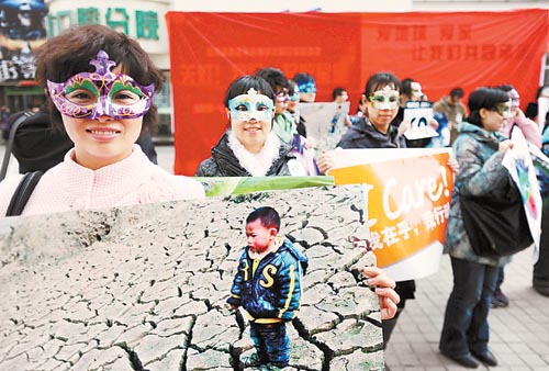 志愿者宣传“地球一小时”