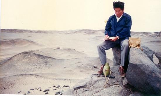 1996年,赵鹏大在新疆罗布泊野外工作。受访者供图