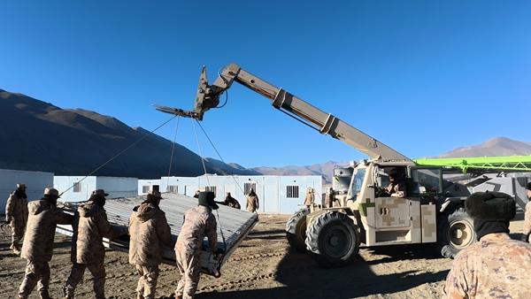 完成人员搜救、医疗救治、热食保障等当前任务后,着眼度过整个冬天乃至后期安置,官兵们发扬连续作战精神,坚持立起标准、牵头负责、包干推进,顶着高反、冒着严寒,全力以赴帮助地方清理废墟、平整场地、卸载物资、搭设板房。