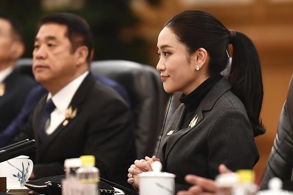 2月6日,北京,中国国家领导人在人民大会堂会见来华进行正式访问的泰国总理佩通坦(右一)。视觉中国供图
