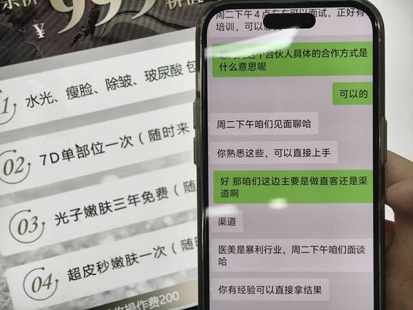 “你的工作主要是卖卡,我们机构不愁没客源。”自称上海某医美机构运营院长的白先生表示,他们与上海多家生活美容院都有合作,销售人员需要与店内工作人员配合,劝说客户购买该医美机构低价的医美项目体验卡,以此引流,再邀请客户到店消费更多高价项目,“店里很多销售靠销售提成,月入3万元-5万元”。