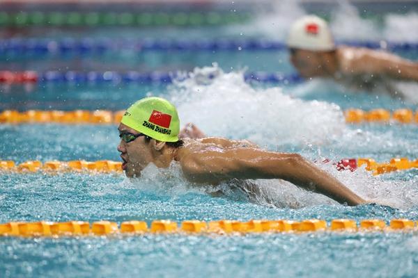 主攻男子中长距离自由泳项目的张展硕,此次在全国春季游泳锦标赛男子1500米自由泳比赛中以14分54秒06的成绩,首次游进15分以内,这个成绩可以排进中国男子1500米自由泳项目的历史前四。比赛的最后阶段,只见身形修长、皮肤黝黑的张展硕在泳池中将其他选手远远甩在身后,最终的成绩也是断崖式领先。不过,志存高远的张展硕显然不会满足于夺得全国冠军。