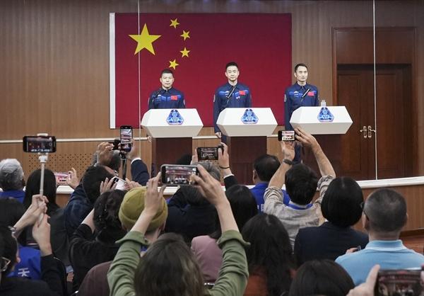 4月23日11时,神舟二十号乘组与中外媒体见面并回答记者提问。