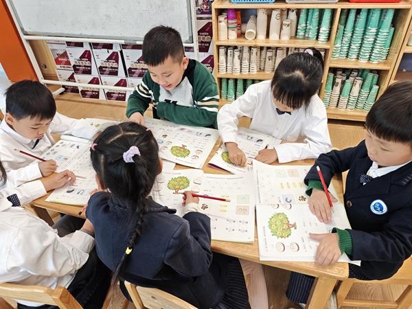 学校为孤独症孩子安排了助学小伙伴,每个班选出有爱心、有耐心、有责任感的同学与孤独症孩子轮流结对,进行一对一帮扶。助学小伙伴陪伴孤独症孩子学习、玩耍,还学会帮助他们安抚情绪、纠正不良生活习惯等。