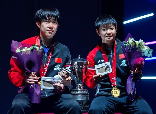 中国女队在本届世乒赛的另一大收获是首次参加世乒赛女双比赛的蒯曼与搭档王曼昱一起拿下了女双冠军。这对新配对的组合一登场就展现出王者实力,充分展示了中国乒乓球队的人才厚度。
