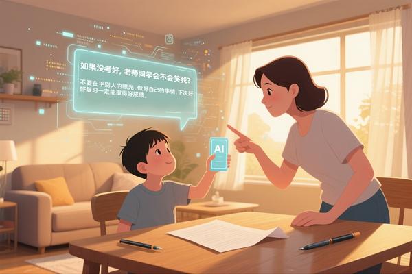 “我问AI,考试没考好怎么办?AI说,一次考不好没关系,可能是因为你这次考试前没好好复习,或者是考试时没发挥好……”孩子说得有条有理,我也来了兴致,问:“它还说什么了?”