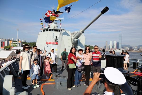 在昂船洲军营码头,湛江舰、运城舰向公众开放,每天迎来超过8000人次的市民参观。军民一家亲,鱼水情更浓,为了让大家有更直观的体验、更充分的表达,两艘战舰在码头专门设置了留言墙,市民既可在此签名合影,也可写下感言,留下寄语。