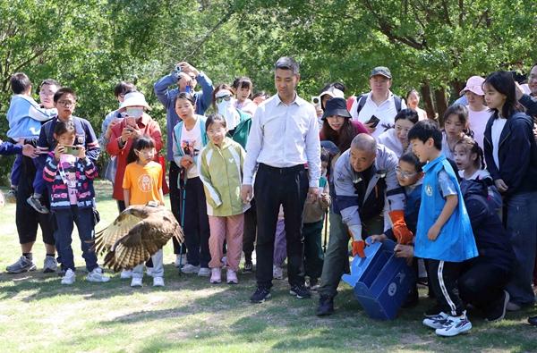 从5月1日开展以来,截至7月10日,北京市百望山森林公园举办的猛禽生态展,已吸引了21154人前来参观,讲解次数达144场。标本展示、多媒体呈现、科普讲解、互动体验……展览生动展现了百望山地区猛禽迁徙奇观及首都生物多样性保护成果,向公众传递保护森林生态系统和生物多样性的声音。